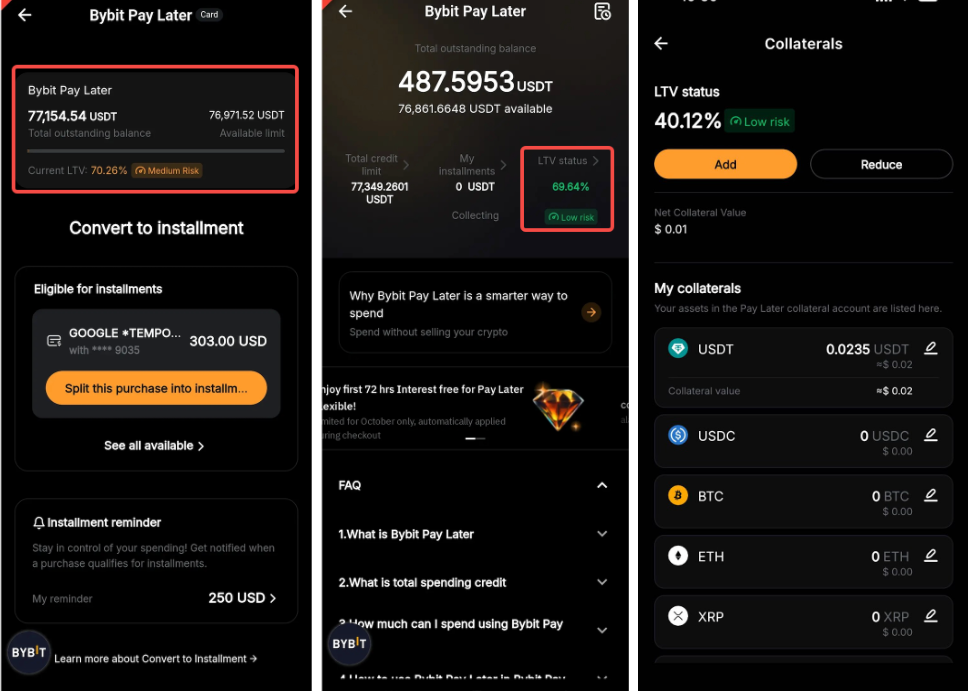 — For more details on how the collateral works, refer to FAQ — Pay Later on Bybit Card.