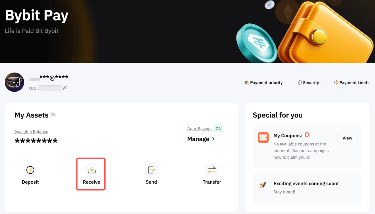 Bybit Payでは、他のBybit Payユーザーや加盟店と取引を行うことができます。現在、アプリを使用したBybit QR Payと、アプリとウェブサイトを使用した社内送金の2種類の受取方法に対応しています。