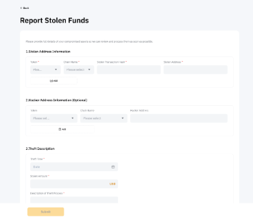 ステップ1:以下のいずれかの方法で「盗難資金の報告」ページにアクセスしてください。