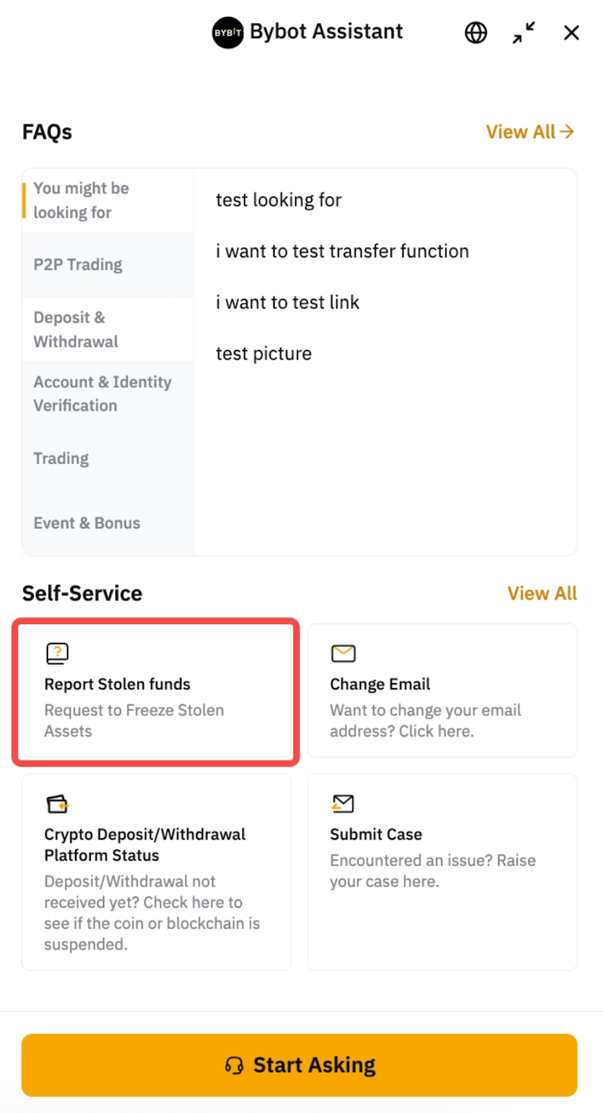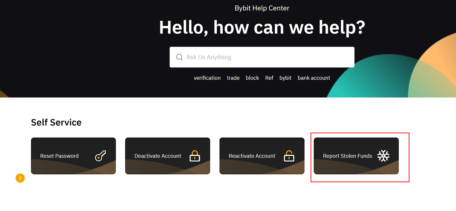 サイバー窃盗の被害に遭い、盗難被害を受けた資金がBybitに送金された場合、本件をご報告のうえ、弊社セキュリティチームに資金回復サポートをご依頼いただけます。