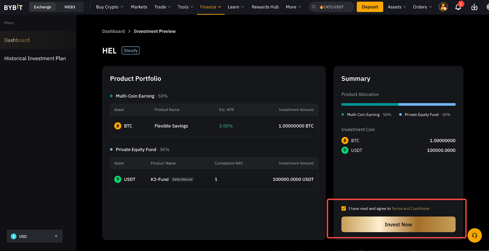 ステップ3:詳細を確認し、利用規約に同意して、投資を確定します。