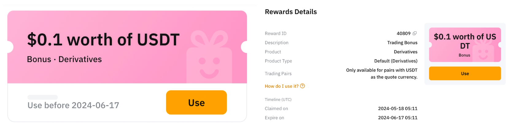 ● ボーナスを受け取ると、お客様のアカウントに入金され、該当する商品の取引ページに該当額が表示されます。ボーナスは、他のアカウントへの振替、または他の資産への交換はできません。