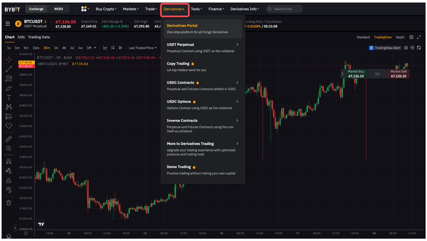 ステップ1: 「デリバティブ」タブにカーソルを合わせ、希望する契約タイプをクリックすると、対応する取引インターフェースに移動します。