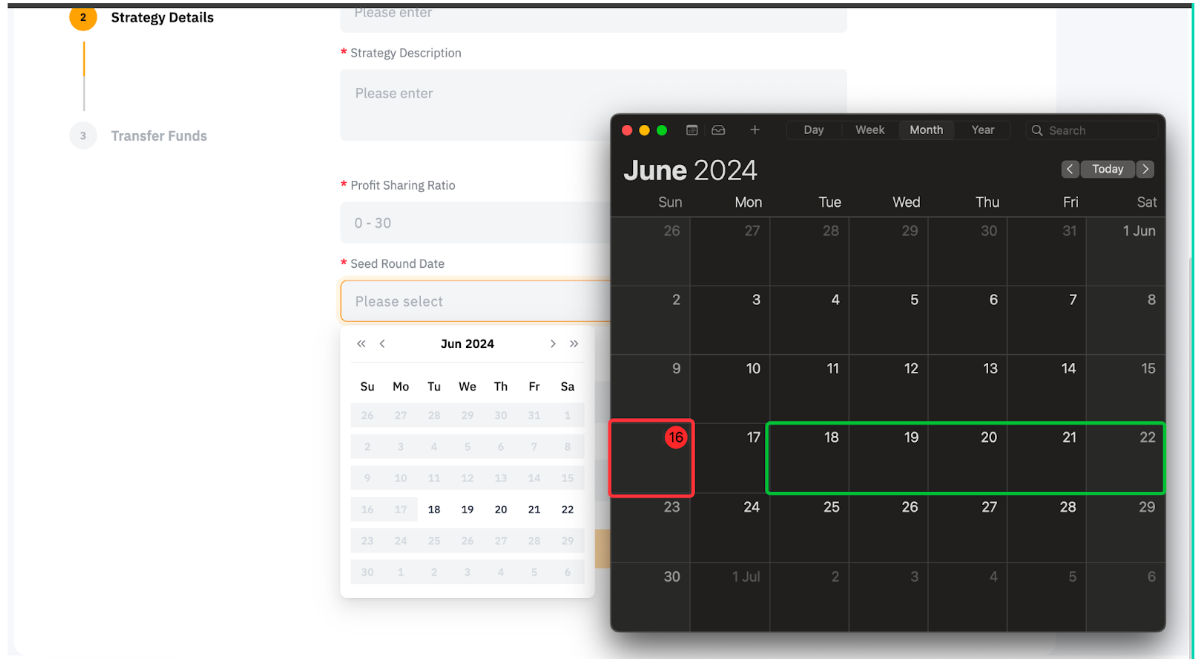 • シードラウンドの開始日:戦略の作成から2日後を起点に、最も近い実施可能な5日間から選択します。シードラウンドは、投資家が出資する3日間の資金調達フェーズです。