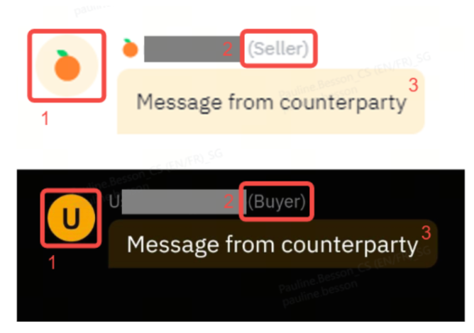 - Sempre confira o avatar do perfil e o estilo da nuvem de mensagem para ter certeza de que você está conversando com a plataforma P2P verdadeira no Chat de ordens P2P. Dica útil: