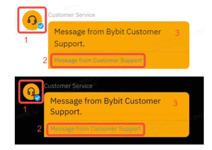 A foto do perfil de todas as mensagens do atendimento ao cliente da Bybit será o ícone do fone de ouvido e o tick azul oficial aparecerá no canto inferior direito. |