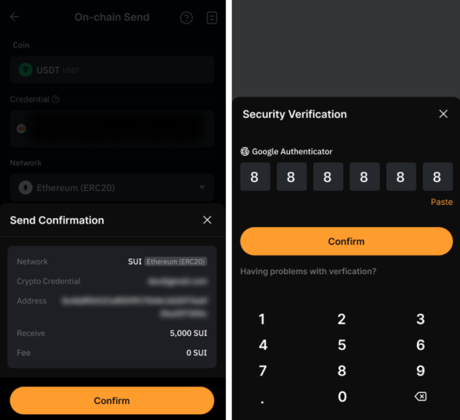 Крок 5: Перевірте дані трансакції, перш ніж натиснути Підтвердити та ввести код Google Authenticator, щоб завершити запит.