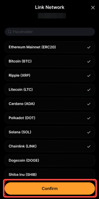Крок 3: Введіть назву мережі в рядку пошуку, виберіть потрібну мережу, а потім натисніть Підтвердити, щоб прив’язати її до Mastercard Crypto Credential.