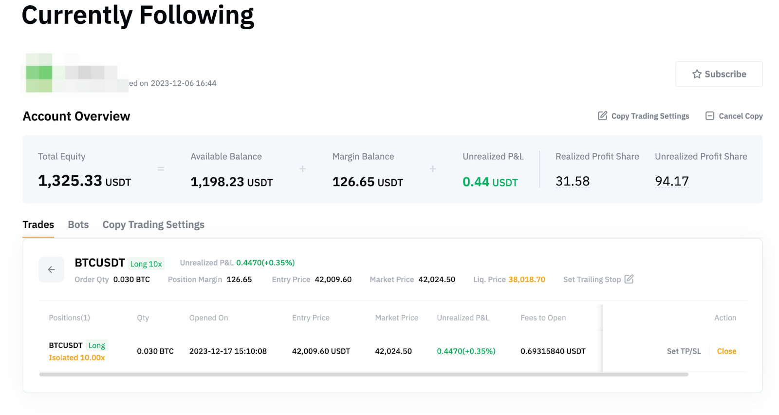 У Центрі користувача копітрейдингу (підписник) користувачі можуть переглядати свої акаунти копітрейдингу, поточні та минулі результати Майстер-трейдерів, на яких вони підписані, та деталі ордерів.