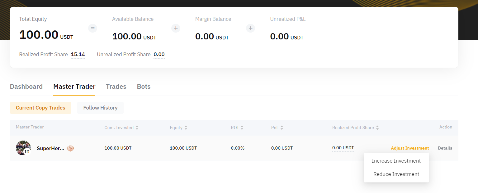 Будь ласка, зверніть увагу, що якщо ви зменшите свої інвестиції в Майстра трейдингу, це не призведе до зменшення вашої Вкладеної за весь час суми.