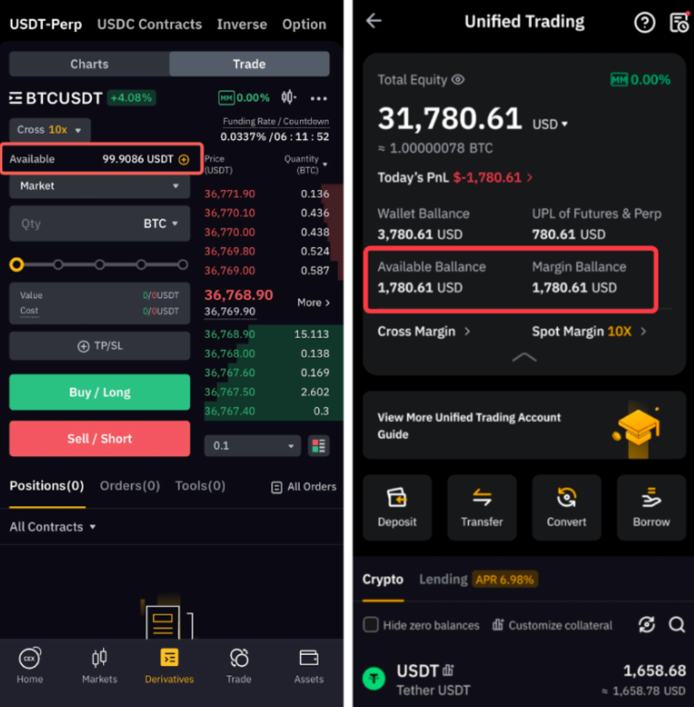 Trong Tài Khoản Tiêu Chuẩn, nhà giao dịch phải sở hữu tài sản cụ thể liên quan đến một sản phẩm giao dịch cụ thể trong mỗi tài khoản khác nhau để tham gia vào các hoạt động giao dịch. Trong tài khoản UTA, nhà giao dịch có thể linh hoạt sử dụng một loạt các tài sản ký quỹ được hỗ trợ làm tài sản đảm bảo, loại bỏ sự cần thiết phải giữ tài sản quyết toán chính xác cho một sản phẩm cụ thể. Để biết chi tiết toàn diện điểm khác biệt giữa Tài Khoản Tiêu Chuẩn và UTA, vui lòng tham khảo So Sánh Giữa Tài Khoản Giao Dịch Hợp Nhất Và Tài Khoản Tiêu Chuẩn.