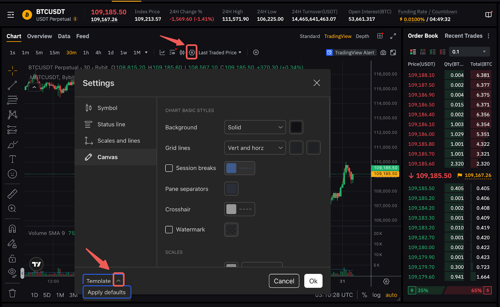 如何在我的交易图表上删除交易对的背景符号?
