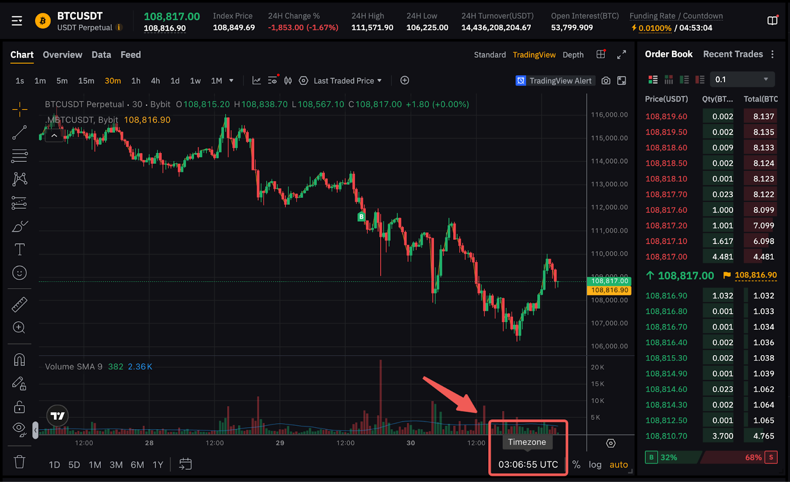 您可以点击图表右下角的时间指示器来选择您喜欢的时区。