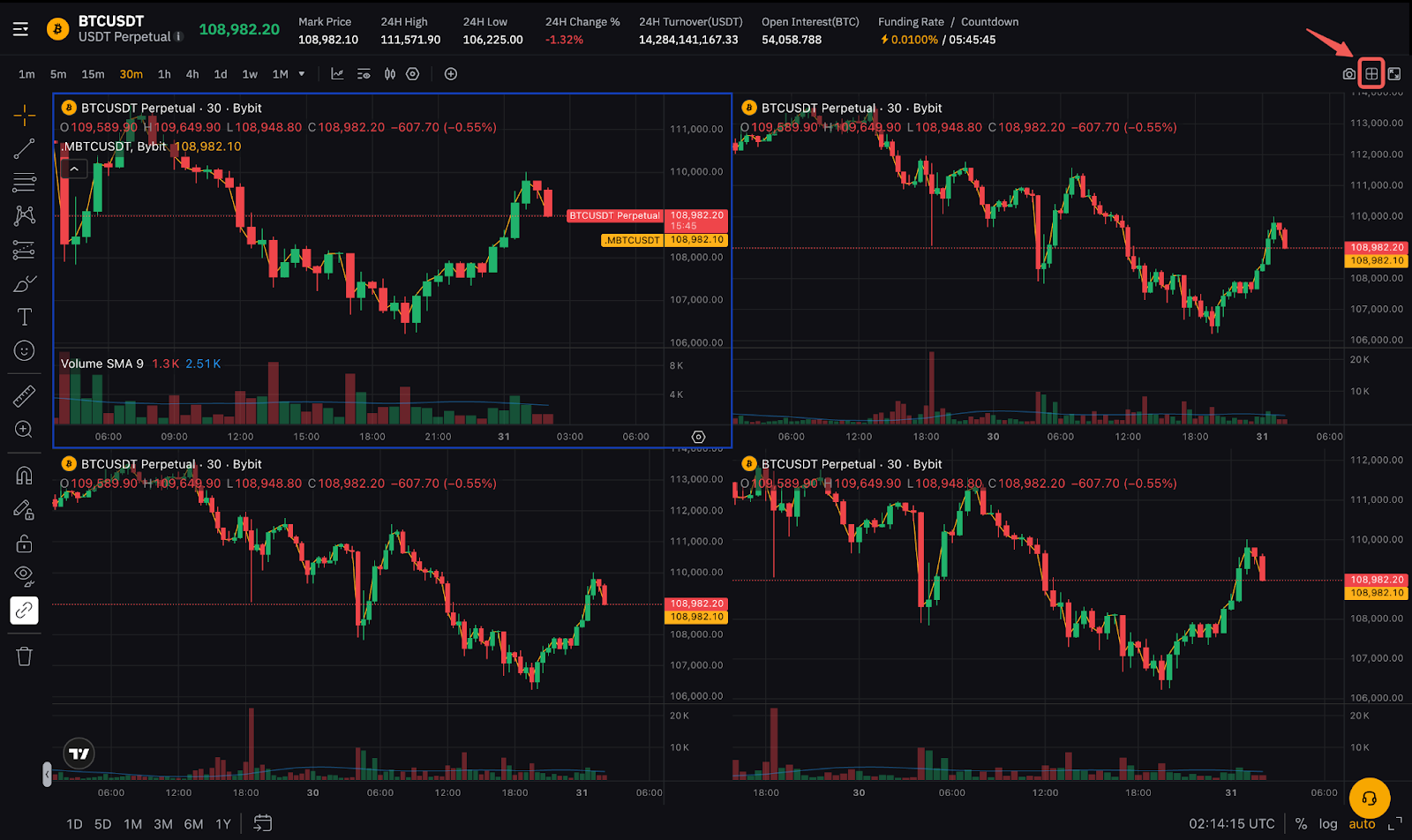 单击图表右上角的多图表图标。在多图表查看模式下,您最多可以从可用模板中选择 5(五)张图表。