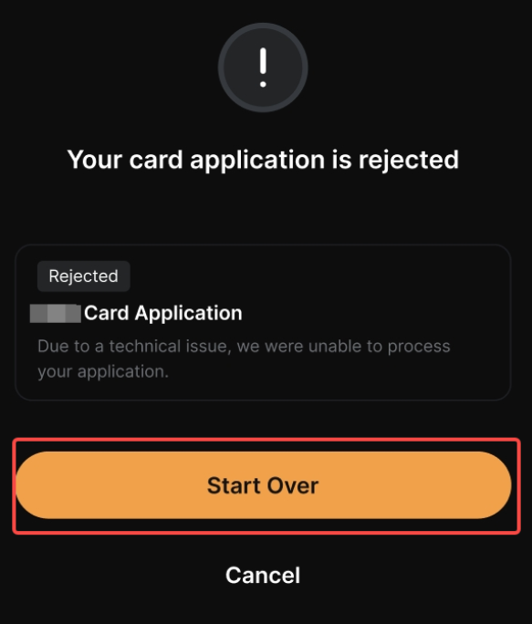 - 如果您的卡片申请在提交后被拒绝,您始终可以重新提交申请。
