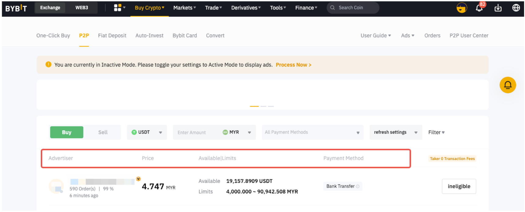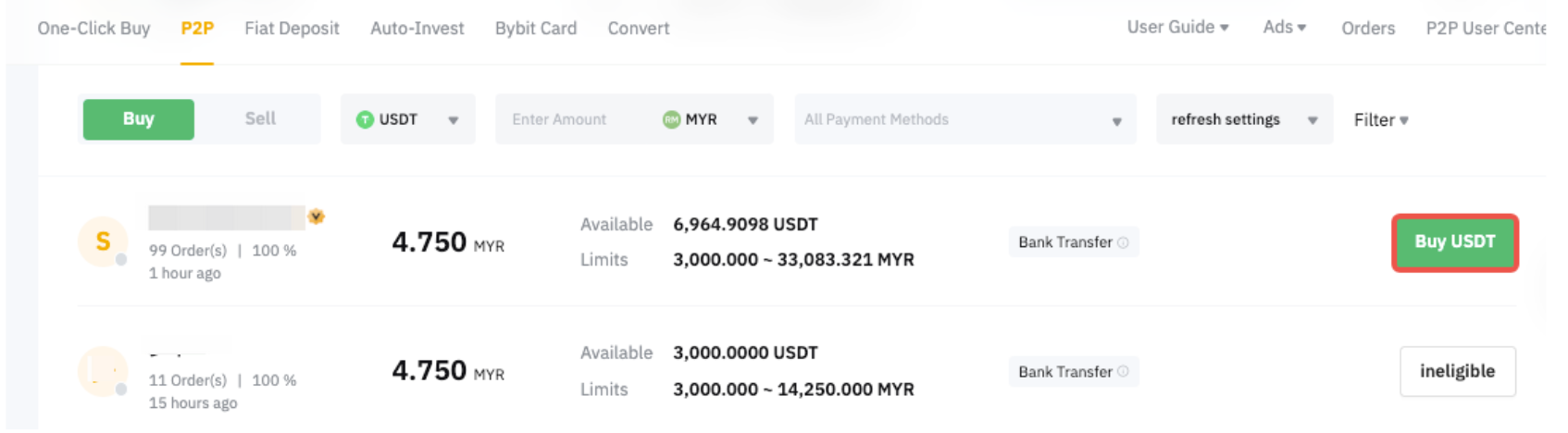 下面是一个分步指南,可帮助您作为买家在 Bybit 上开启首次 P2P 交易。
