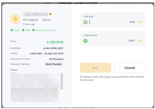 第 3 步:选择心仪广告,然后点击购买 USDT
