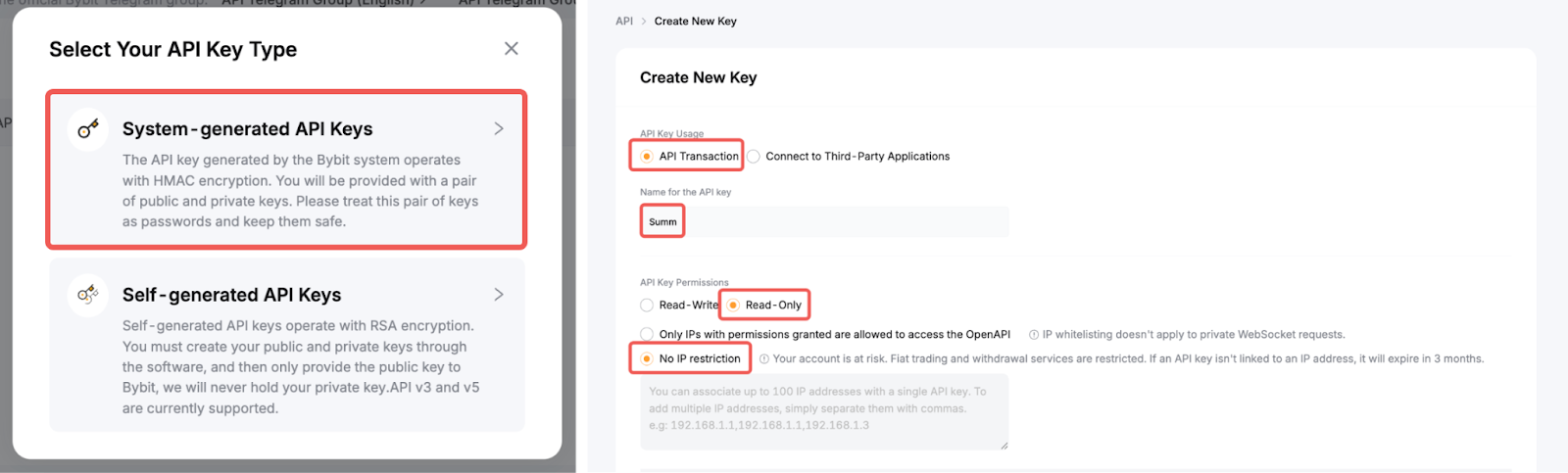 4. API 密钥权限:只读,无 IP 限制