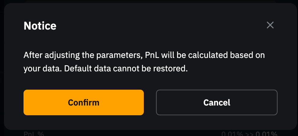 第 3 步:系统将弹出确认窗口,提示您将根据修改后的数据重新计算收益收益率。您可在交易页面底部资产旁的盈亏项下查看更新后的收益收益率。请注意,修改操作不可撤销。点击确认以继续。
