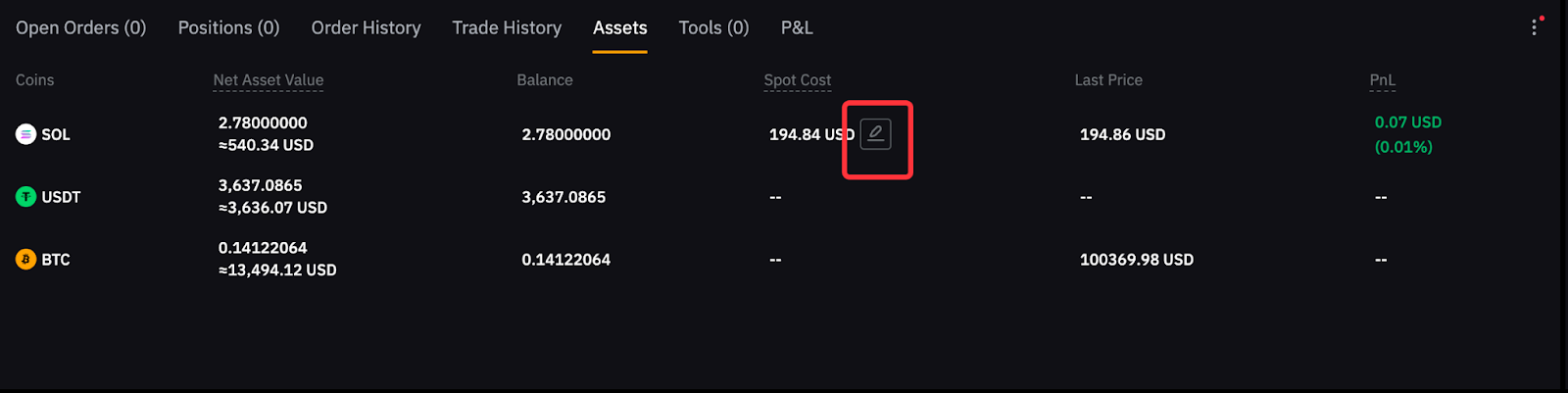 Bybit 现货成本价基于平台自 2025 年 2 月 12 日以来收集的数据计算得出。如系统显示的成本价与您的实际成本不符,您可手动修改。