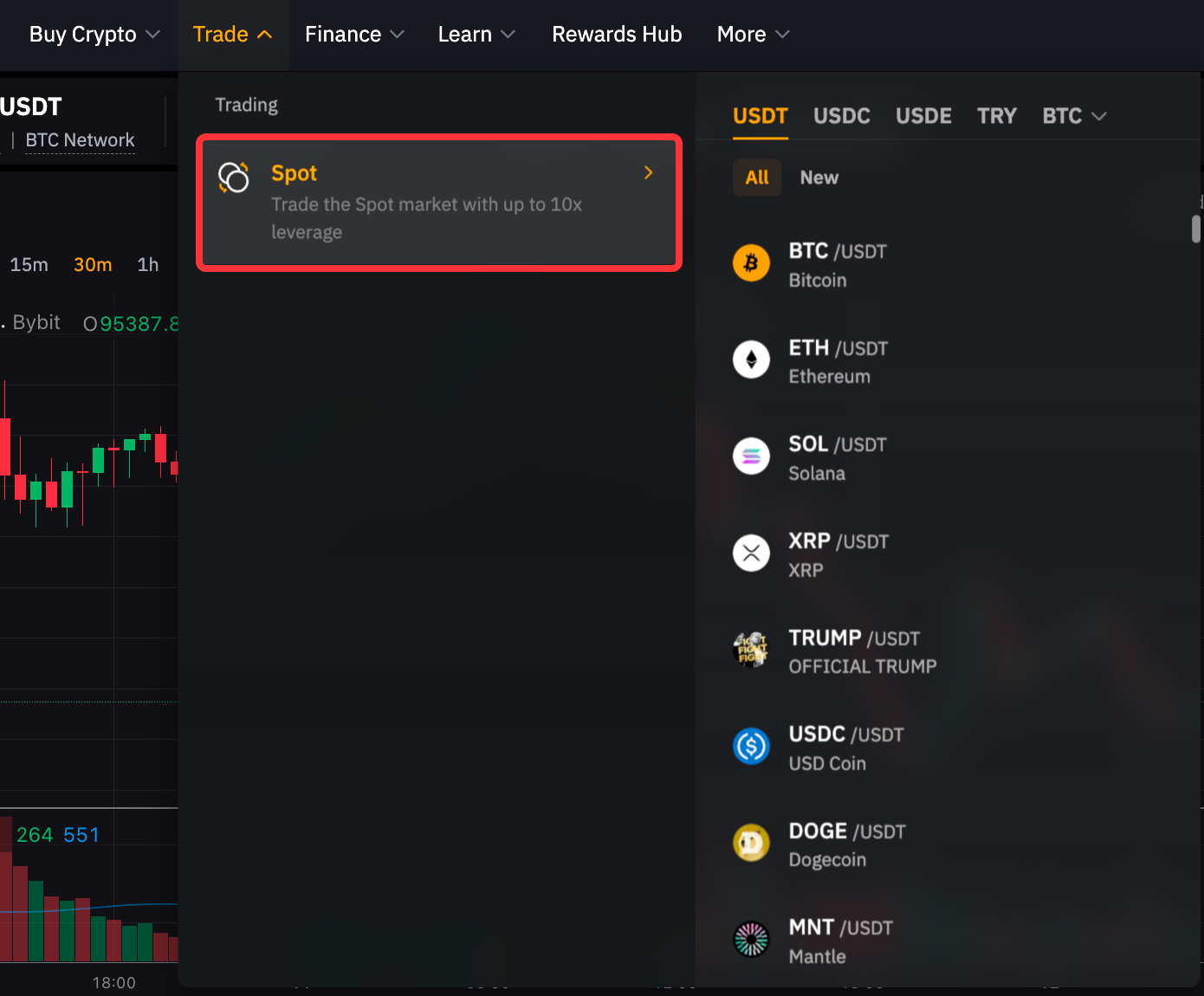 第 1 步:登录账户,点击顶部导航栏中的交易现货,进入现货交易页面。