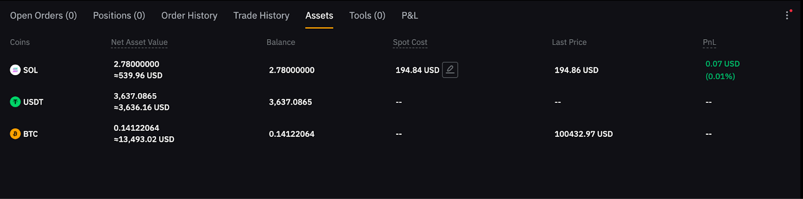1. 买入价将统一兑换为 USDT 进行计算,现货成本价以美元 (USD) 显示。