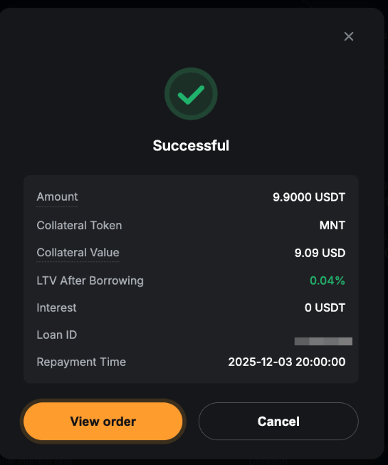 即可成功提交质押借币订单!