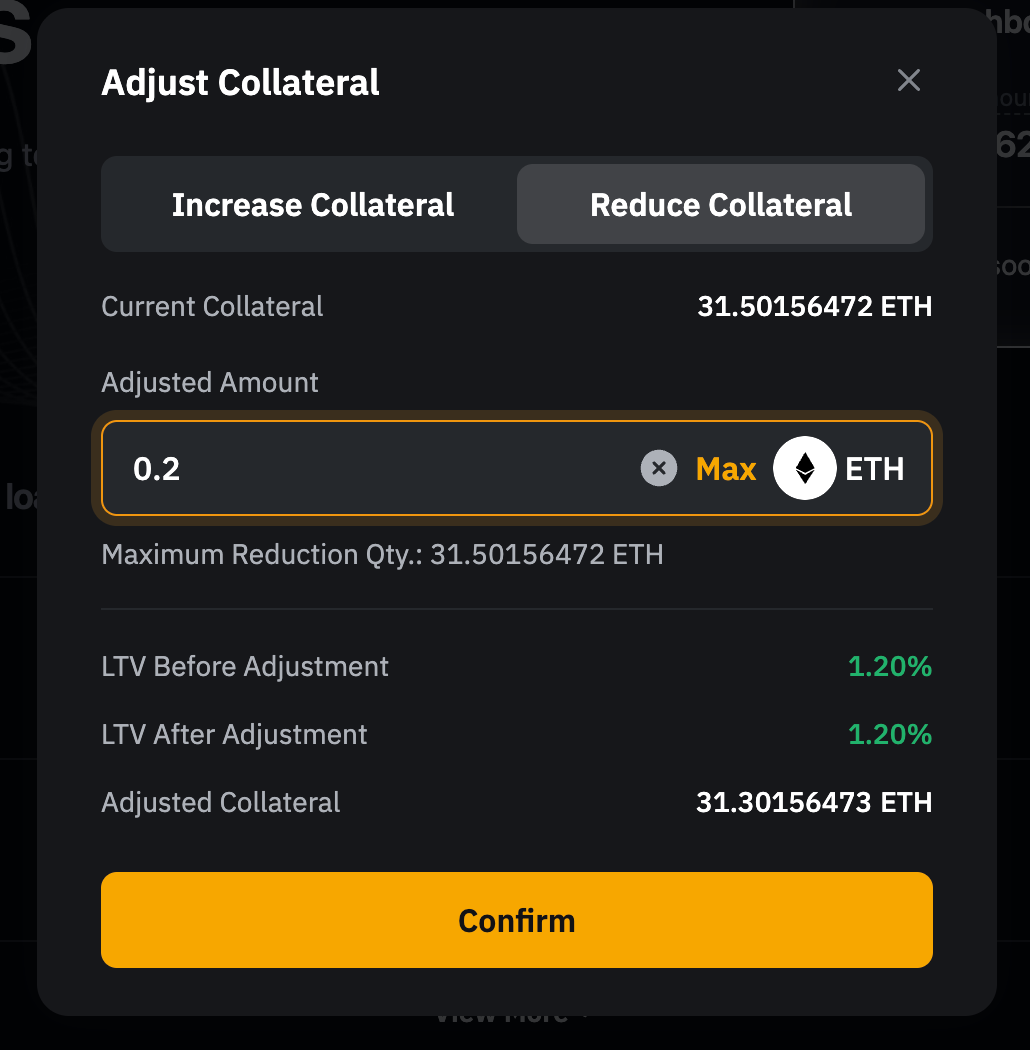 — 最大可减金额指可使 LTV 恢复至初始水平的抵押资产数量。具体数值请以调整窗口显示为准。
