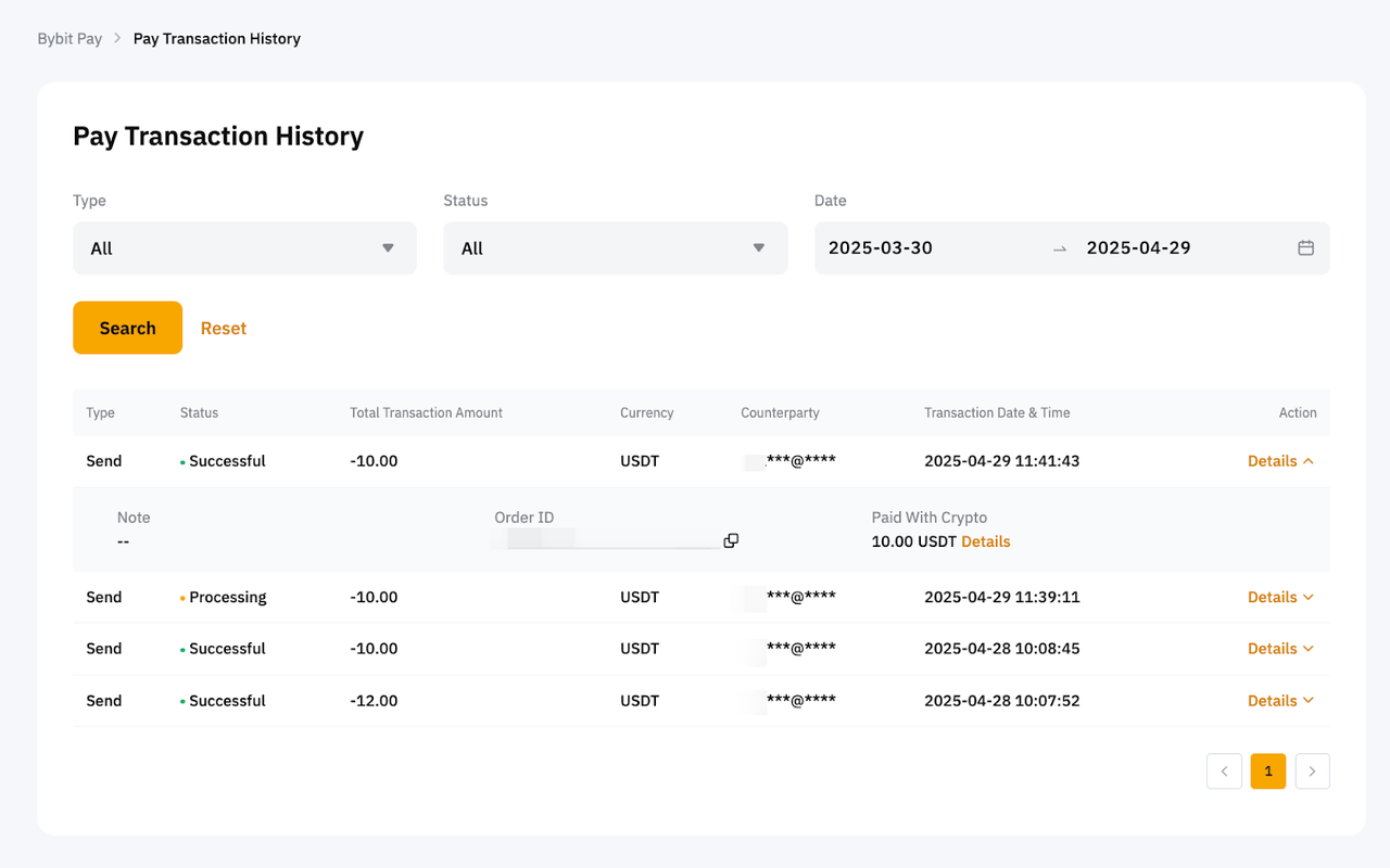 要查看您的付款历史记录,请前往“Bybit Pay”页面,滚动到底部,然后单击“查看全部”。或者,只需前往您的“付款交易记录”。