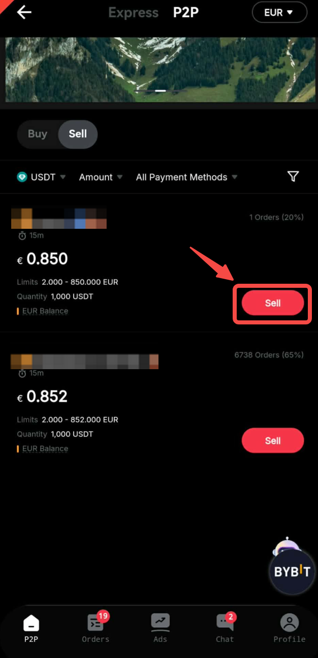 第 3 步:选择您的首选广告商,然后单击卖出。请确保您选择的广告商支持法币付款。