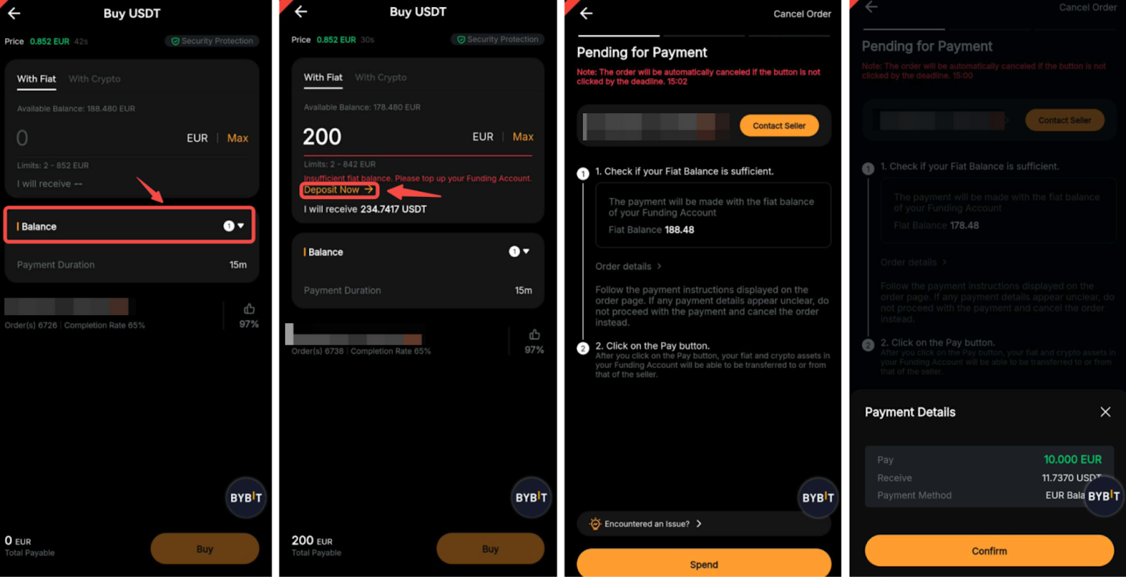 以下分步指南概述了如何使用您的法定余额在 Bybit 完成首次 P2P 事务。
