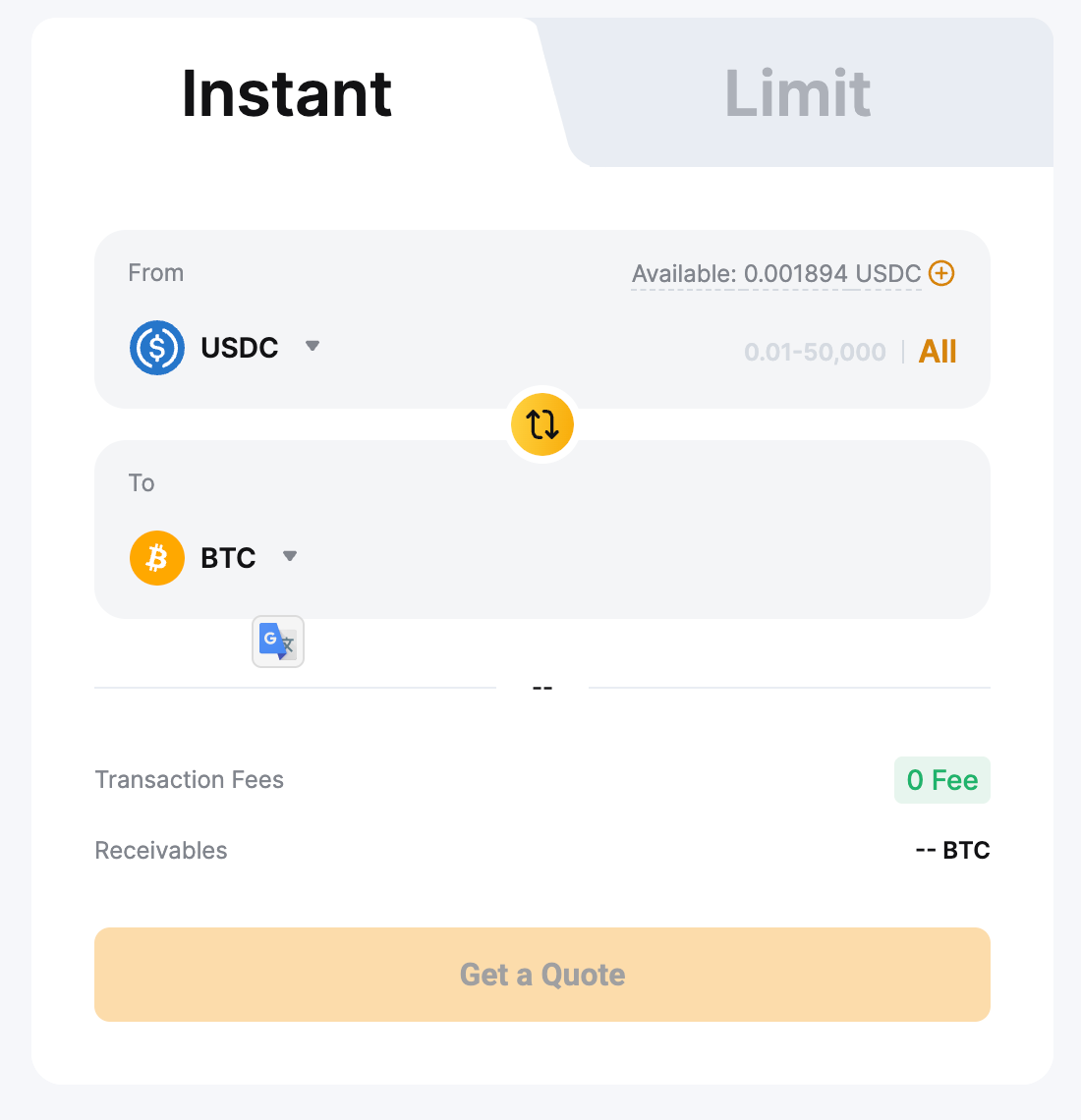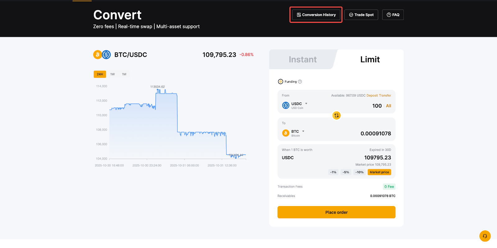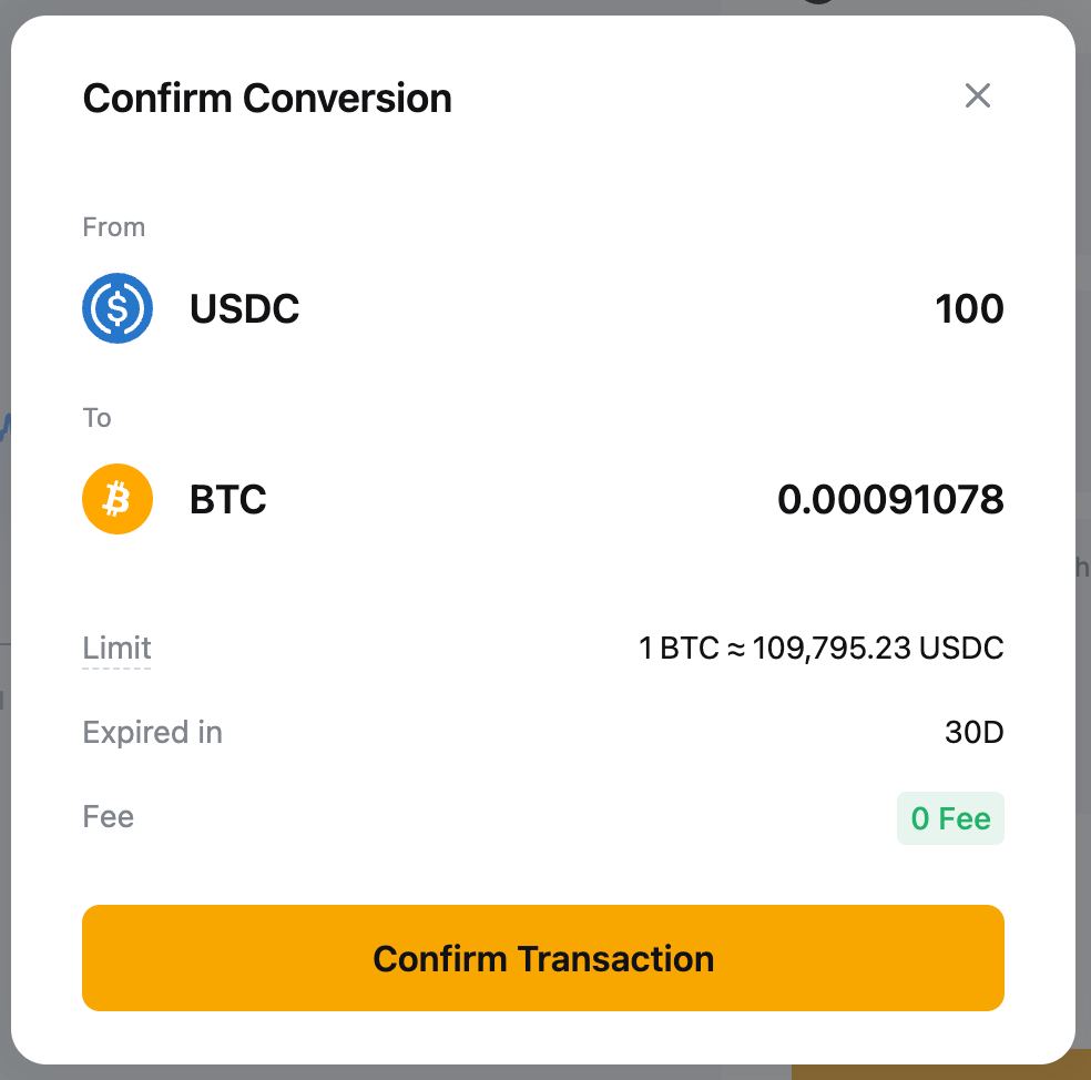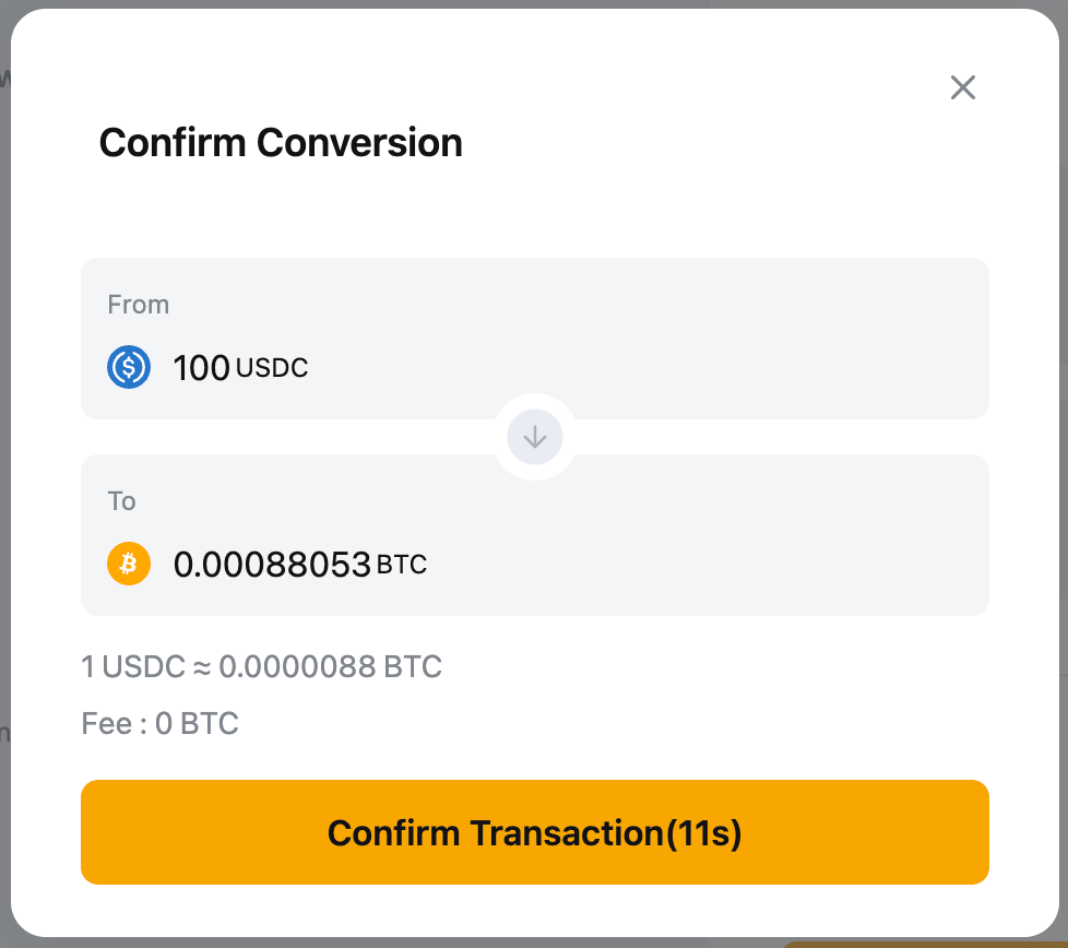1. 闪兑模式:确认交易后,您的资产将立即按页面上显示的报价进行转换。