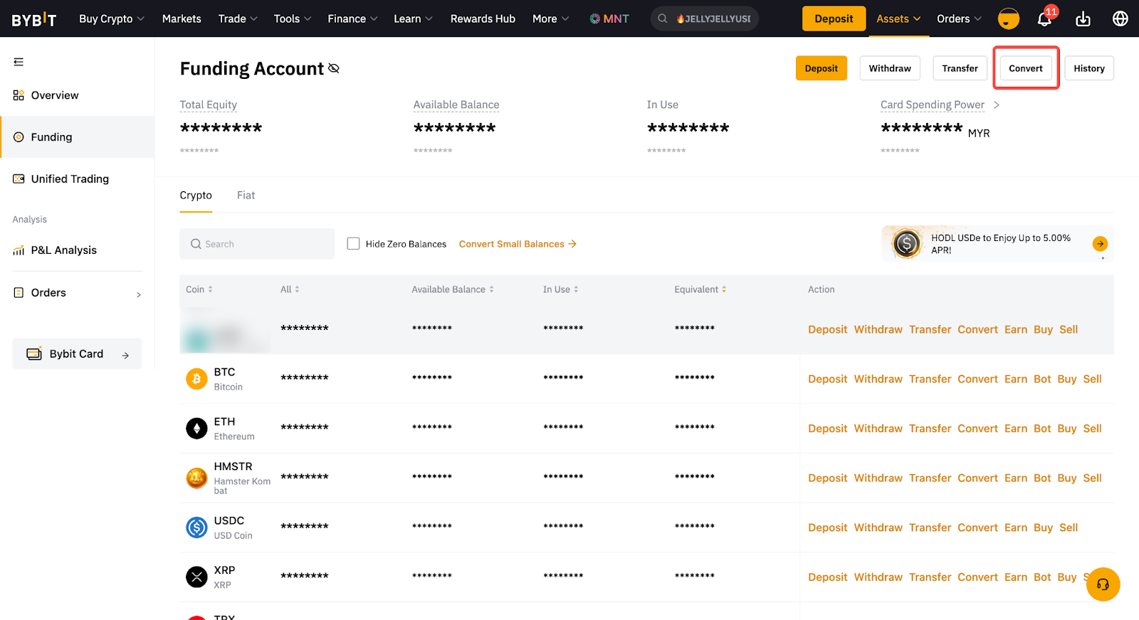 或者,您也可以直接从 “资金账户” 或 “统一交易账户 ” 页面访问 “闪兑”。