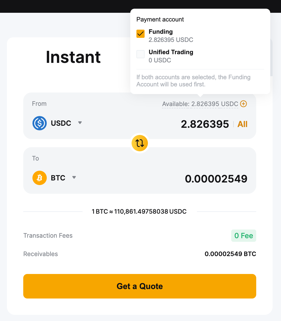 — 如果选择资金账户进行转换,转换后的资产将记入资金账户。如果选择 UTA,将相应地计入。如果选择两个账户,转换后的资产将记入资金账户。