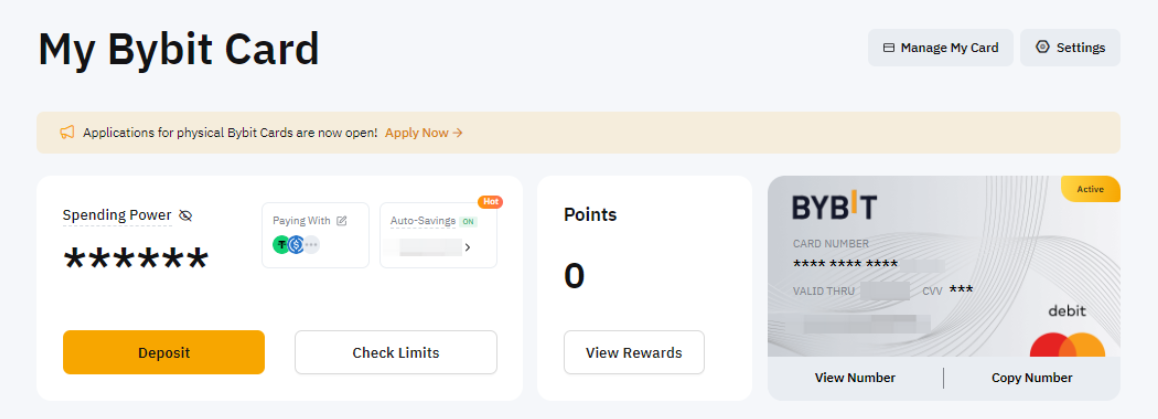 Bybit 虚拟卡和实体卡